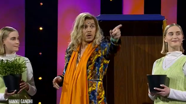 Hahmo yritti todistaa asian lähettämällä yleisössä istuneen Venlan studion ulkopuolelle ja teleporttaamalla tämän lavalle tuotuun kaappiin.